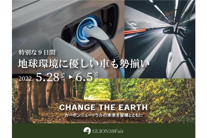 GLIONグループ(ジーライオングループ 所在地:兵庫県神戸市)では5月28日(土)から6月5日(日)までの9日間、カーボンニュートラルの未来を皆様とともに目指すべく、各店舗及びオンラインで「GLION39Fair -CHANGE THE EARTH-」を開催します。本イベントでは、「EV(電気自動車)」や「PHEV(プラグインハイブリッド)」など地球環境に優しい車も勢揃い。グループに所属する輸入車、国産車より、新車・新古車・厳選中古車等、豊富な知識で最適な車両をご提案いたします。是非、この機会にお車の購入をご検討下さい。