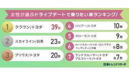 続いて、女性が選ぶドライブデートで乗りたい車ランキングを紹介します。