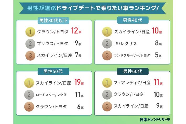 日本トレンドリサーチ・ドライブデートで乗りたい車に関する調査