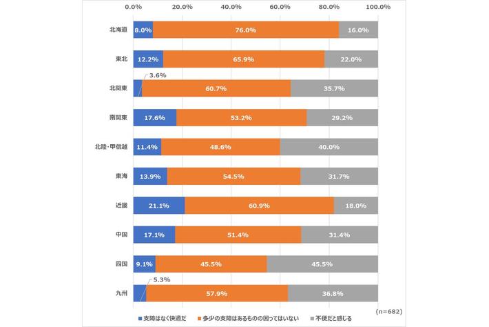 っていない状態の人が過半数以上を占める結果に。一方で、地域別に見ると「不便だと感じる」と答えた割合は