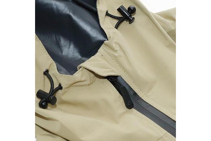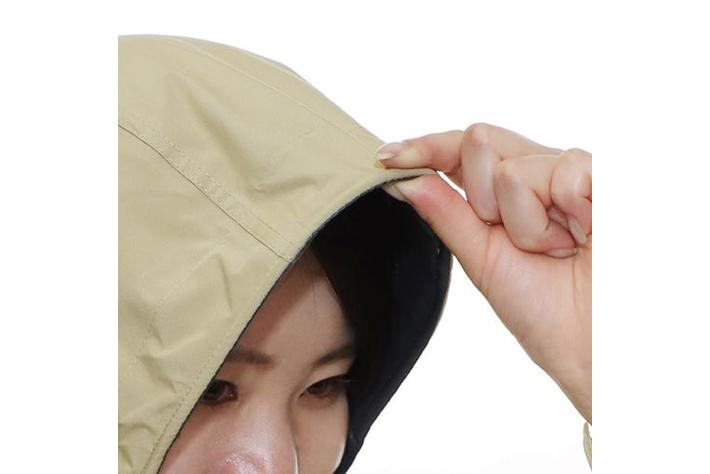 先端つば部分の形状をキープする特殊なパイプを埋め込むことで、フードを絞っても雨水で顔を濡らしません。