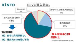 (「すでにBEVを所有中で、次も購入意向あり」:9% / 「購入意向あり」:19% / 「購入意向はあるものの、悩んでいる」:64% / 「購入したくない」:8%)