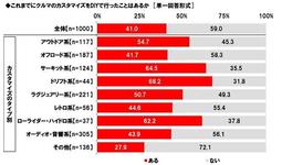 男女別にみると、男性では「サーキット系」が19.4%と、女性(5.4%)と比べて14.0ポイント高くなりました。