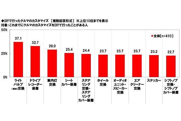 DIYで行ったカスタマイズ TOP3は「ライトバルブ(電球)交換」「ドライブレコーダー装着」「車内灯交換」