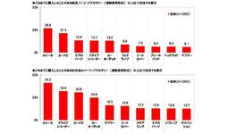 全回答者(1,000名)に、これまでに購入したことがあるパーツ・アクセサリーを聞いたところ、【純正パーツ・アクセサリー(※)】では「ホイール」(26.8%)が最も高くなり、「カーナビ」(21.3%)、「エアロパーツ」(13.4%)、「ドライブレコーダー」(13.1%)、「カーオーディオ」(13.0%)が続きました。