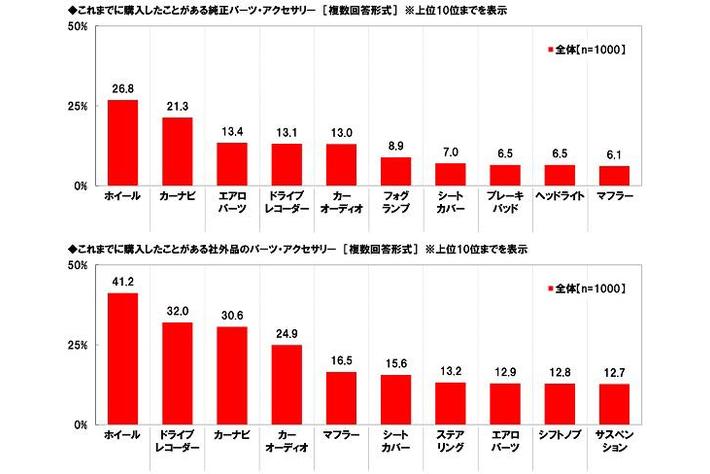※「社外品のパーツ・アクセサリーとは自動車メーカー以外によって販売されているパーツ・アクセサリー」と説明を付して聴取。