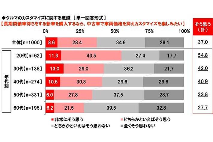 「長期間納車待ちをする新車を購入するなら中古車で車両価格を抑えカスタマイズを楽しみたい」20代では55%