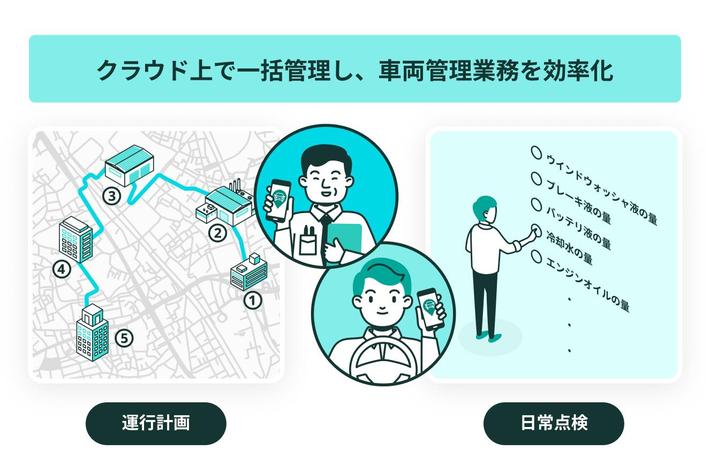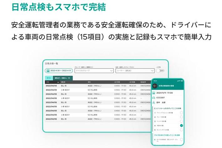 日常点検や運行計画もスマホで簡単入力 業務で車両を利用する際に必要な情報をクラウド上で一括管理