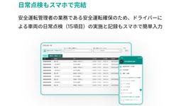 法令で必要とされる乗車前の日常点検がスマホ上の項目入力で実施でき、専用画面での一括管理も可能