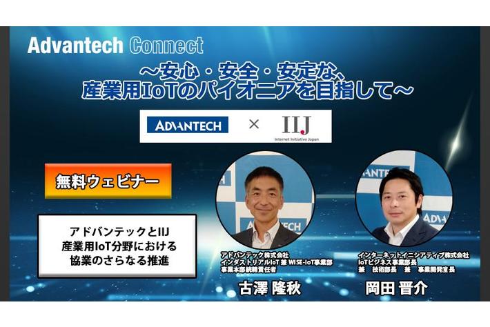 アドバンテック株式会社(Advantech Co., Ltd. 本社:台湾台北市/日本法人:東京都台東区、 以下 アドバンテック)は、2022年7月 15日(金)、「安心・安全・安定な、産業用IoTのパイオニアを目指して」をテーマに、株式会社インターネットイニシアティブ(IIJ)と対談形式でお届けするウェビナー「Advantech Connect」を配信させて頂きます。