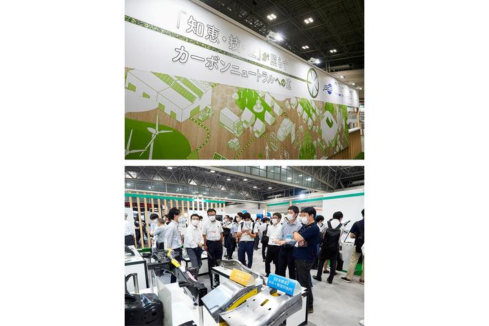 製造工程(ものづくり)における省エネ技術のゾーンでは、材料・工程・設備の見直しや、現場のアイデアによる創意工夫など、ものづくりの要素に着目し、製造現場に向けたカーボンニュートラルへの対応技術を、ものづくりにおける省エネ技術の「知恵・技・匠」として展示しました。