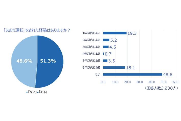 1. あおり運転をされた経験があるドライバーは51.3%と、2018年の調査開始時(70.4%)以降、