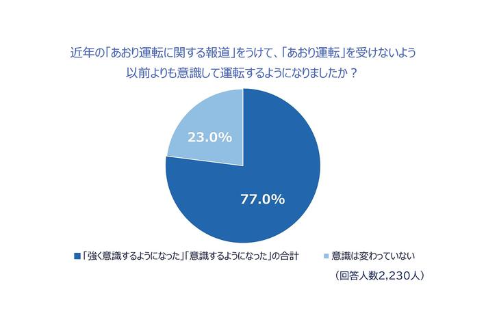 近年の報道を受けて、あおり運転を受けないよう、以前よりも意識して運転しているドライバーは77.0%。