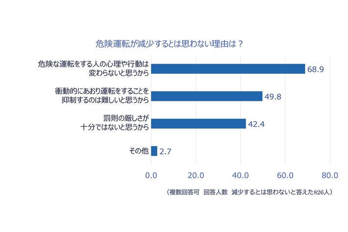 一方、減少しない理由としては、「危険な運転をする人の心理や行動は変わらないと思う」が最多に。