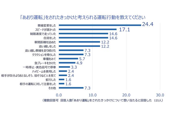 スピードや進路変更にまつわる行為をあおり運転のきっかけと感じるドライバーが多い結果に。