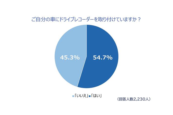 ドライブレコーダーの利用について聞いたところ、前年より4.8ポイント上昇。54.7%がドライブレコーダーを取り付けており、利用者が非利用を上回る結果となりました。