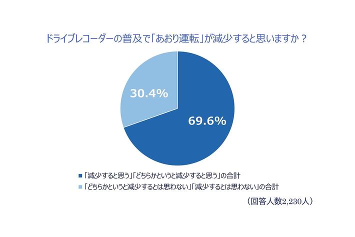 ドライブレコーダーの普及であおり運転が減少すると思うか聞いたところ、69.6%のドライバーが減少すると思うと回答。ドライブレコーダー普及への期待が大きい結果となりました。