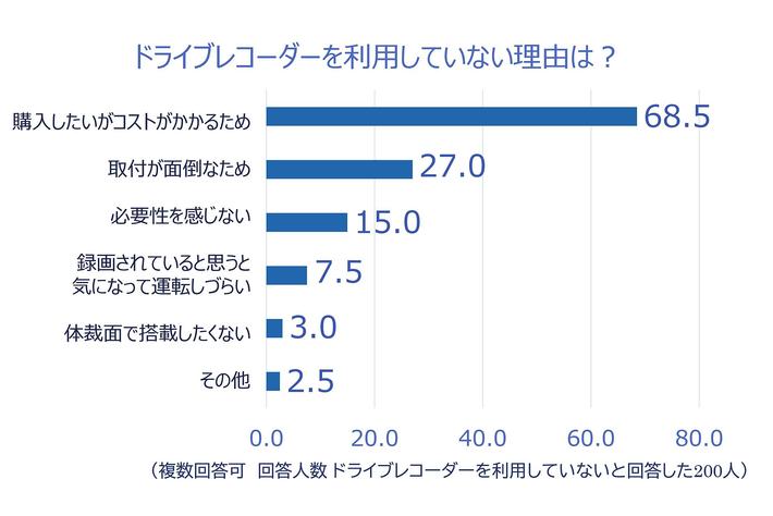 8. ドライブレコーダーを利用していないドライバーの68.5%が「購入したいがコストがかかるため」と回答。