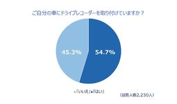 ドライブレコーダーの利用について聞いたところ、前年より4.8ポイント上昇。54.7%がドライブレコーダーを取り付けており、利用者が非利用を上回る結果となりました。