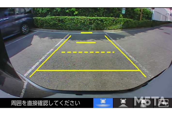 「車いす仕様車専用リアカメラガイドライン」で最小限のスペースで簡単に駐車可能