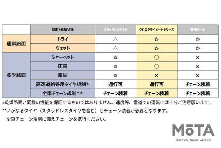 従来品「MICHELIN CROSSCLMATE+」との比較