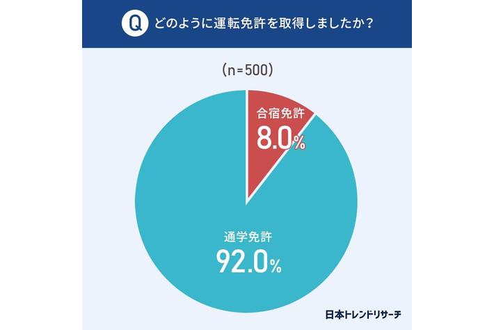 まずは、普通自動車運転免許を取得したことがある全国の男女500名の方に、どのように運転免許を取得したかについて聞きました。