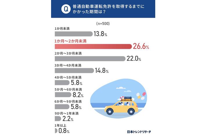 続いて、免許を取得するまでにかかった期間について聞きました。