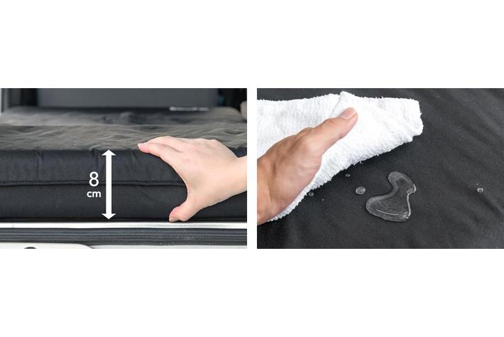 ウレタンの厚みは約8cm。マットレスの厚さと適度なかたさによりシートの段差を解消し、車内で寝室のような快適な寝心地を実現しています。