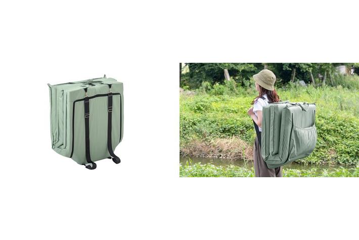 本製品は、車外・屋外への持ち運びも想定して、リュックのように肩にかける為のショルダーストラップを装備しています。テント泊する場合、駐車場から荷物を持ち込む際にも、背負うことで両手を自由に使うことができます。