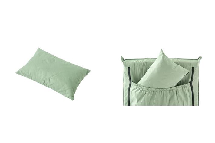本製品を購入すると、同色生地で作られたクッションも付属しております。ベッドスタイルの時には枕として使用することができます。またカウチや座椅子スタイルにおいて、使わない場合は、ハイバックの背面に背面ポケットを用意していますので、その中に収納することができます。