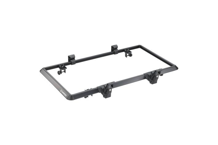 ベースキャリアに『クイックベース』を設置する(上写真)事で『ギアキャリー』をレバー操作のみで簡単に着脱できるようになります。この新構造『クイックロック(R)システム(特許出願済)』によりルーフボックスの着脱が簡単になり、本体に装備されたタイヤにより駐車場からキャンプ場、自宅から駐車場までの荷物の運搬が楽になります。シンプルな構造にすることで本体が重くなりすぎないよう設計していますが、荷物の重量によっては無理をせず、積載する前に一度荷物を間引くか2人での積載を推奨しています。
