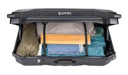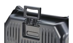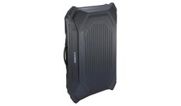 これまでの流線型ルーフボックスとは異なり、ヘビーデューティなスーツケースやアウトドアギアをイメージしたデザイン。キャリー用ハンドルは、走行中の汚れが付かないよう車載時は折りたためる仕様に。取り外して運ぶ際、ぶつけやすい角は強度を上げ、縦置き横置きに自立するスタンドも装備しました。