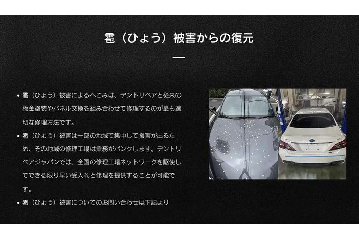 【埼玉県・千葉県の雹害対策 デントリペア・へこみ修理はこちら】