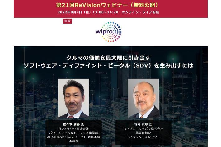 【無料WEBセミナー】 日立Astemo、Wiproから講師を迎え、次世代のソフトウェア・ディファインド・ビークル(SDV)に関する講演・議論を無料ライブ配信 ― 9月9日(金)