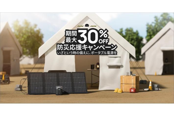 最先端のポータブル電源やクリーンな電力技術を開発するテクノロジー企業、EcoFlow Technology Japan株式会社(本社:東京都江東区、以下EcoFlow)は、9月1日の「防災の日」に向けて、2022年8月29日(月)より「EcoFlow 防災キャンぺーン2022」を開始しました。EcoFlow公式サイトをはじめとするECサイトや取り扱い家電量販店では、対象製品が最大30%OFFになるセールを開催します。
