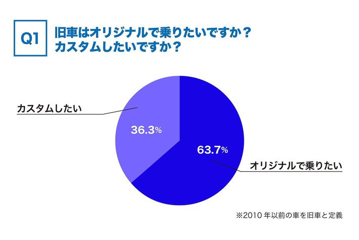 ・調査内容:Q1.旧車はオリジナルで乗りたいですか?カスタムしたいですか?※2010年以前の車を旧車と定義 Q2.旧車パーツの入手方法について教えてください。※2010年以前の車を旧車と定義※複数回答可 Q3.乗っている旧車のパーツが今後なくなることについて、不安を感じていますか?※2010年以前の車を旧車と定義