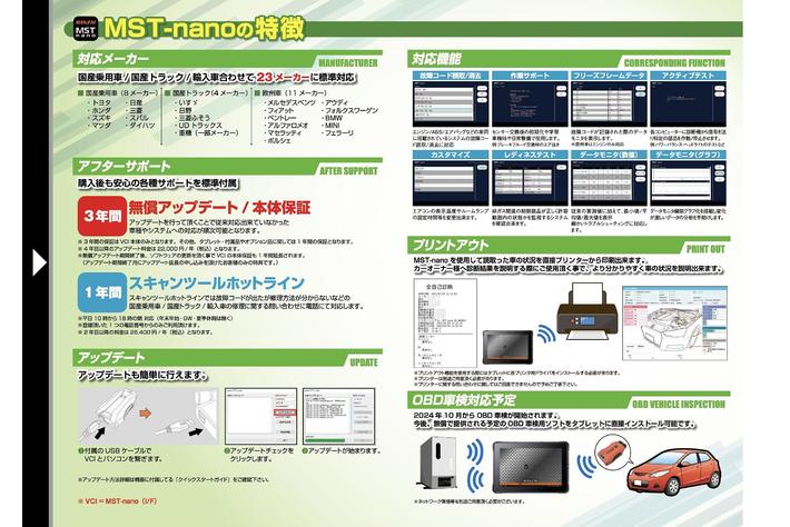 またMSTシリーズでは初となる車両との無線接続を採用しました。各種表示や操作を行うタブレットのOSはWindows10を採用し、診断結果を普段お使いのプリンターから印刷出来ます。