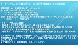【ライブ配信セミナー】リチウムイオン電池のリユースに向けた残量推定・劣化診断技術 9月26日(月)開催 主催:(株)シーエムシー・リサーチ