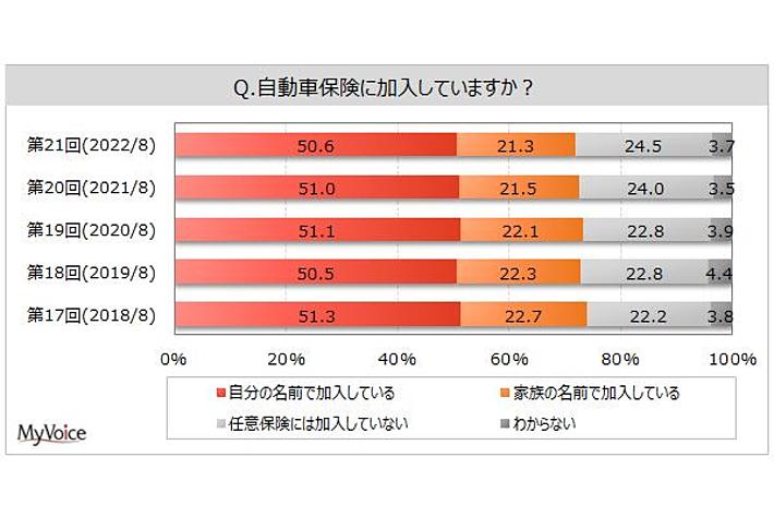 マイボイスコム株式会社(東京都千代田区、代表取締役社長:高井和久)は、21回目となる『自動車保険の利用』に関するインターネット調査を2022年8月1日~5日に実施しました。本調査の自動車保険は、任意で加入するもの(任意保険)を対象としています。調査結果をお知らせします。