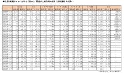 主要転職6サイト別では、Indeedが前月比3.4%減の36,524件、dodaが同6.8%増の2,978件、リクナビNEXTが同0.9%増の961件、マイナビ転職が同7.5%減の129件、ランスタッドが前月と変わらず78件、エン転職は同3.4%増の60件となっています。dodaは関連求人件数の増加が続いており、18カ月連続増となりました。