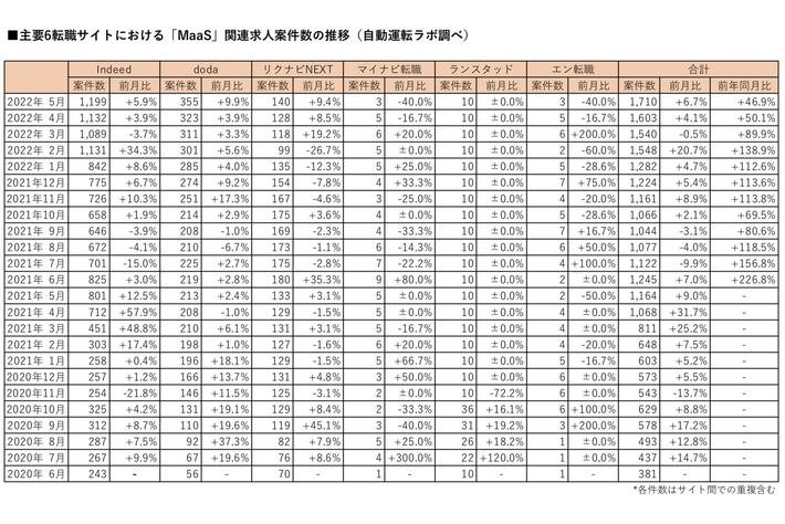 株式会社ストロボ(以下、当社/東京都港区 代表取締役 下山哲平)が運営する日本唯一の自動運転専門ニュースメディア『自動運転ラボ』(https://jidounten-lab.com)は、日本国内における自動運転・MaaS関連求人案件数の最新調査(2022年5月末時点)をまとめましたので、結果を発表いたします。