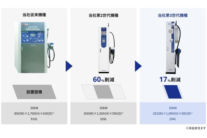 ・10kW・25kW・35kW・50kWは、低圧受電範囲で設置可能。CHAdeMO方式を採用。