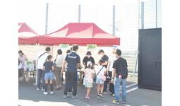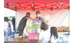 外部給電装置という設備を使い、取り出した電気をAC100ボルトに変換、わた菓子作りに電力を供給しました。わた菓子は、クイズラリーに参加した子どもたちへプレゼント。