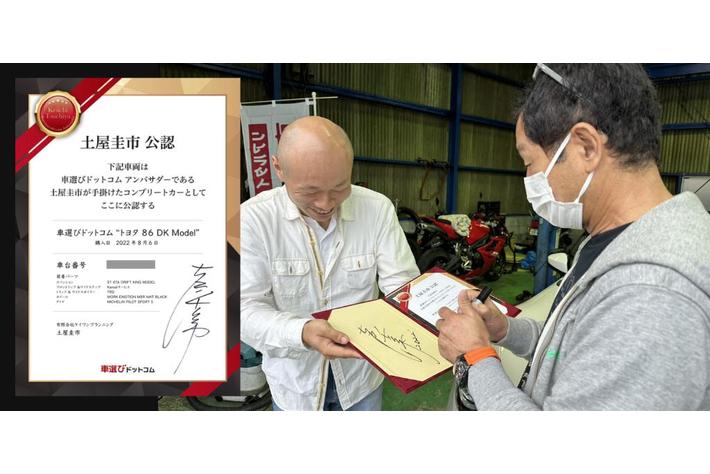 2022年8月にはメインMCである土屋圭市氏が手掛けたトヨタ86のコンプリートカー、DK(ドリフトキング) モデルを制作・販売いたしました。第1弾であったこともあり、販売したクルマは即日完売いたしました。9月23日(木)には愛知県にて納車式を執り行い、オーナー様へ無事に納車いたしました。