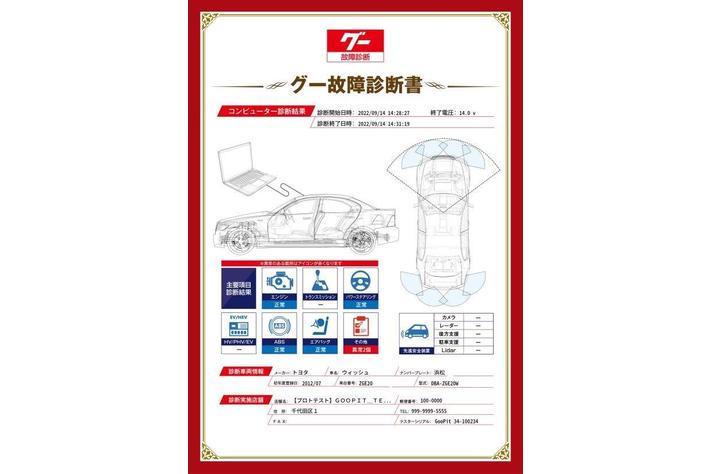 「グー故障診断」ではユーザーの保有する車の状態が一目でわかる診断書を発行いたします。