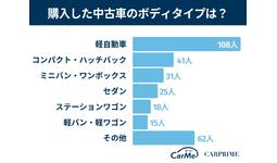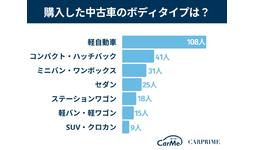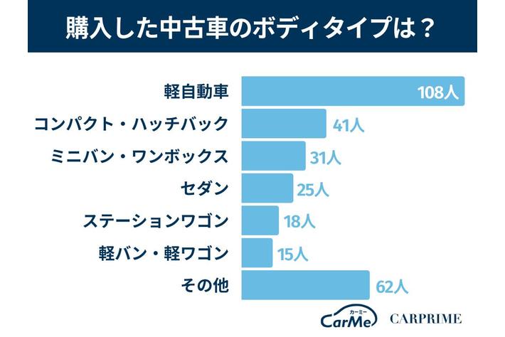 購入した中古車のボディタイプは軽自動車が108名(36%)と圧倒的に人気でした。軽自動車は価格帯が安く、中古車を求めるユーザーにフィットしやすいことが原因と考えられます。