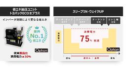 スリープIN・ウェイクUP機能により、非加工時間の消費電力を最大75%削減します。また、ジェイテクトフルードパワーシステム製の省エネ油圧ユニット「トヨパックECOIIプラス」は、インバータ制御により消費電力従来比50%削減を達成しました。これらの消費電力削減効果により、CO2排出量を最大3t/年削減します。