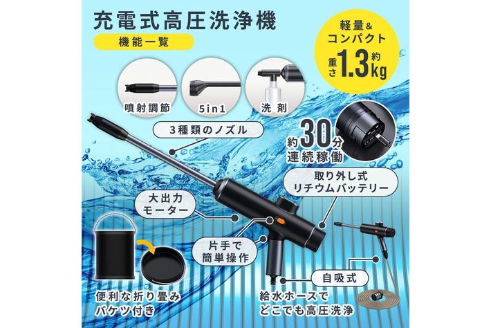 【新発売】7つの洗浄モード×パワフル強力洗浄!×洗車モード!コードレスでどこでも使える高機能高圧洗浄機