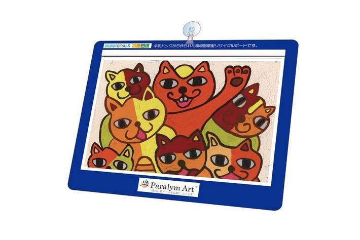 【環境保護×パラリンアート】リサイクル牛乳パックで作った環境配慮型プライスボードに採用