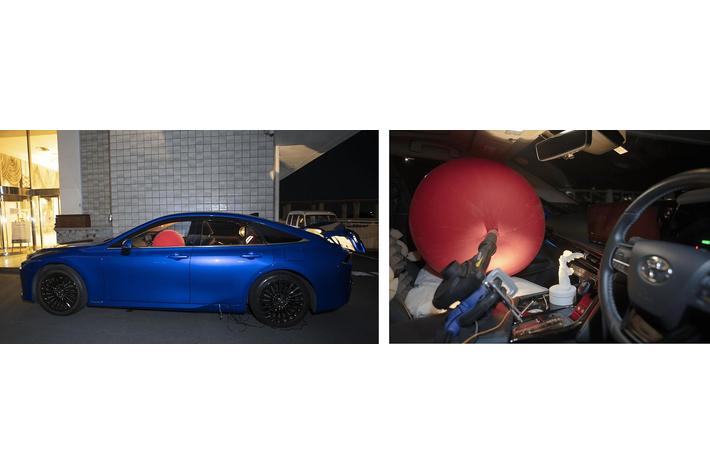 トヨタの燃料電池自動車『MIRAI』が水素を基にした自身の発電エネルギーによって、制御用PCやプロジェクタ等の機器や、車内に設置された装置、元々クルマに装備された座席を駆動させる小型インスタレーション。クリーンな未来を夢見るクルマは、この先の希望も絶望も、悲喜こもごも様々な想いを抱えて、駐車場で眠り、夢を見続ける。無意識(=本能的)に未来へ突き進もうとする人類の進歩主義観の是非について。